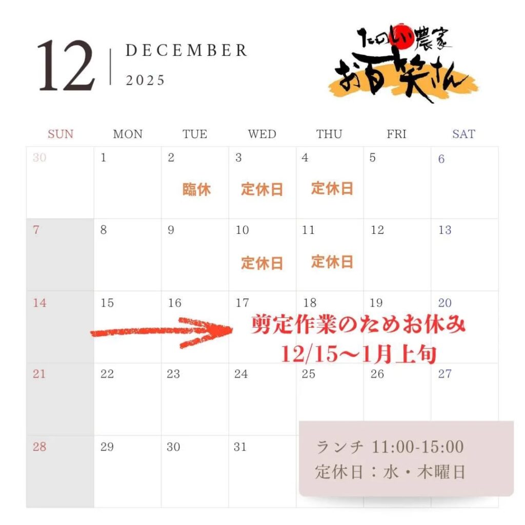 なので12月の百笑茶屋ランチは12/14(日)までの営業です。また12/2(火)は臨時休業します。